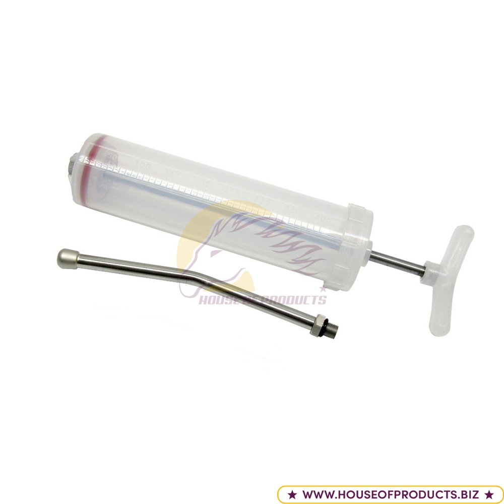 This Drenching Syringe 400ml is a heavy-duty veterinary/oral dosing syringe designed for administering large-volume liquids — such as medications, supplements, electrolytes, or fluids — to large animals (cattle, horses, goats, sheep, etc.). Its large capacity makes it suitable for adult livestock and repeated dosing without frequent refilling.